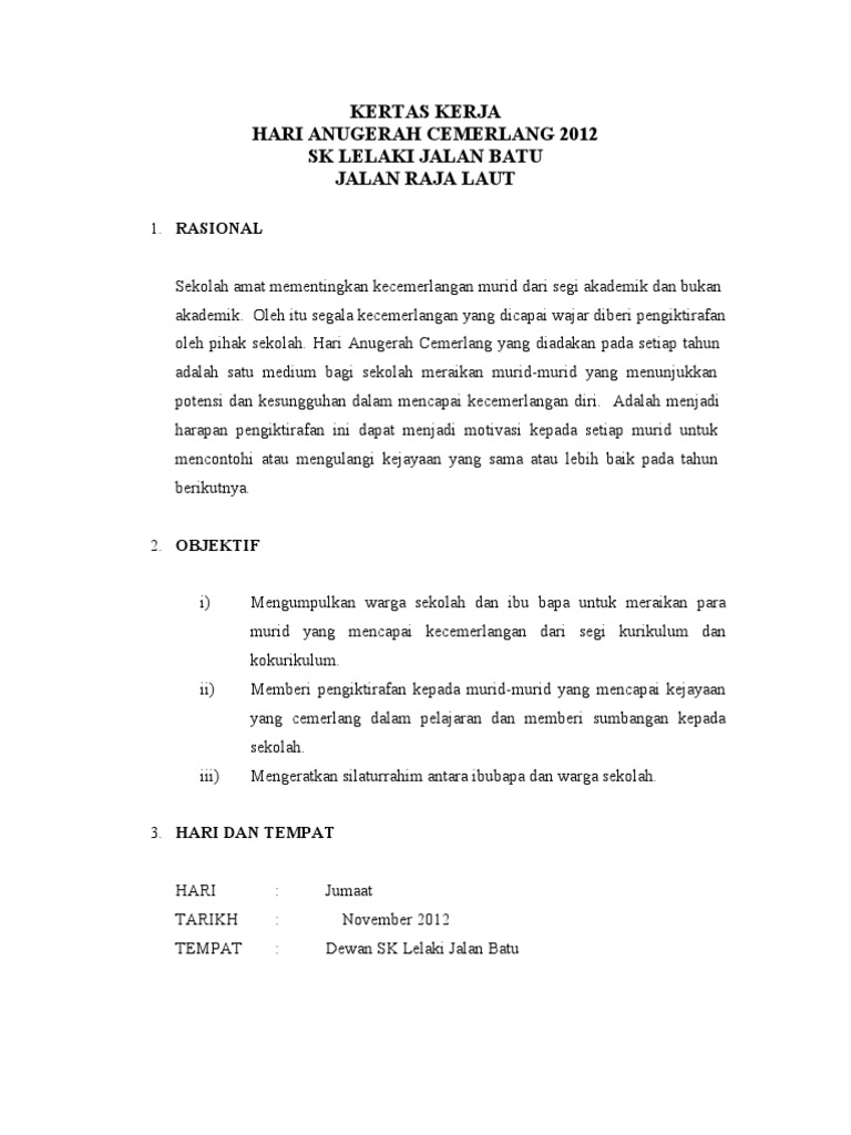 Contoh Kertas Kerja Hari Anugerah Cemerlang Pdf